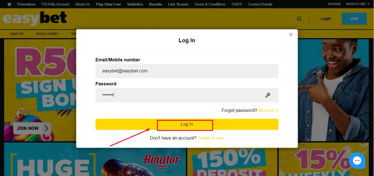 4. Log in with your new easybet registration online South Africa login details.